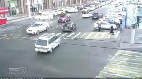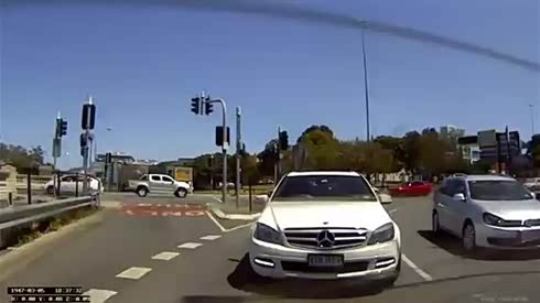 摔的太狠了 SUV横穿马路翻滚而来撞车