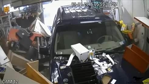 撞得一片狼藉 实拍SUV离奇冲进商店
