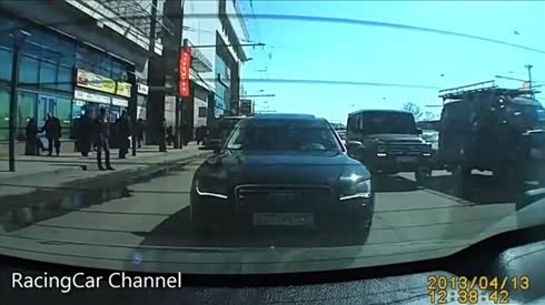 街拍 煤老板开奥迪Q7 雪地拖行60吨货柜车