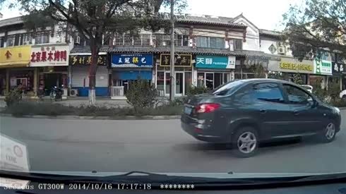 背后袭击 实拍失控轿车猛撞路口车辆