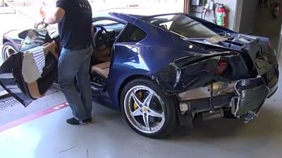 车体受伤严重 实拍法拉利599 GTB被拖走