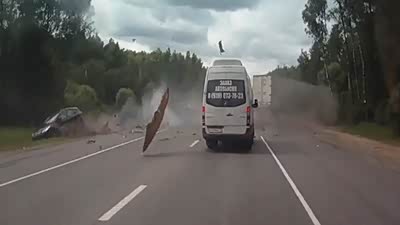 事发突然 实拍三车公路迎面恐怖混撞