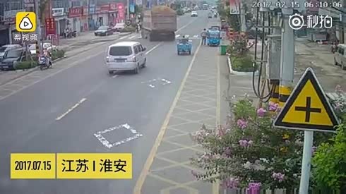 大货车躲三轮冲向路边店铺 撞倒老太