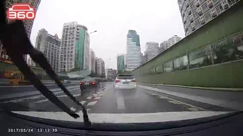 雨天转弯过急 撞碎车灯后360度旋转
