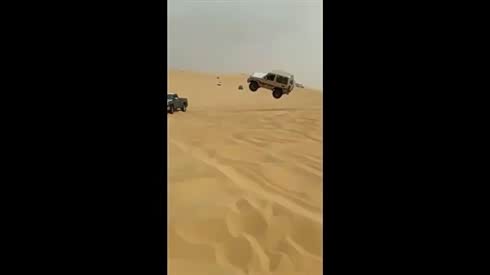这下悲剧了 丰田LC71飞跃沙丘撞上皮卡
