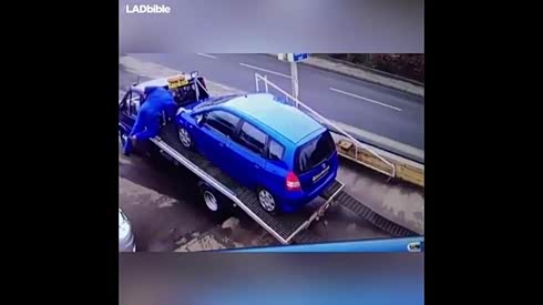 真是夹缝中求生存 摄像车遭遇左右夹击