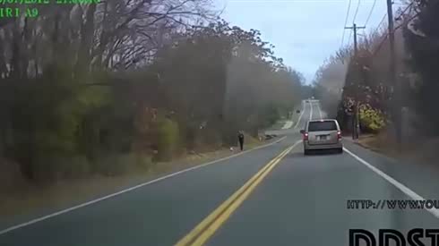 受伤严重 看小鹿飞奔过马路被汽车撞飞
