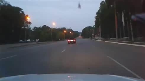 鲁莽大意 轿车追大排量摩托时失控翻车
