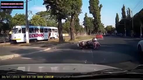 一慌就出事 实拍美女试骑摩托不幸惨撞