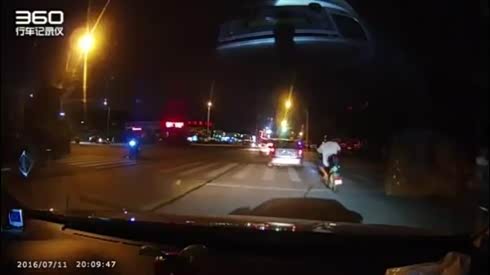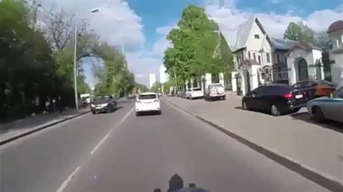 怎么这么倒霉 轿车突然开门掀翻摩托车