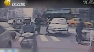 司机啥眼神 轿车拐弯撞翻斑马线上行人