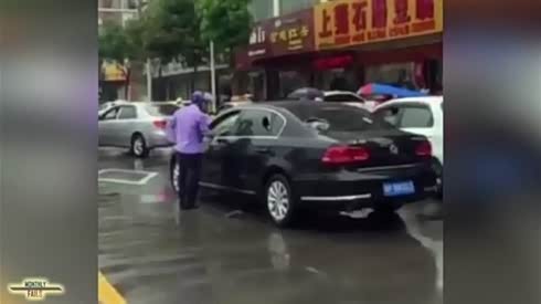 佛山无影脚踹碎前挡风 迈腾猛男被人肉
