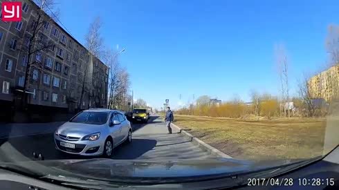 遭遇小狗鬼探头 轿车把狗撞出数米翻滚