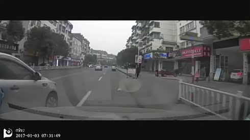 意外难料 实拍女司机路口撞翻骑车人