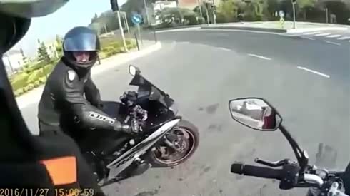 自作自受 大摩托车飙车失控撞上护栏