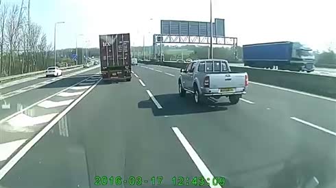 肯定相互在较劲 宝马被货车顶出高速路