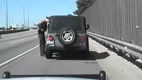 摊上事了 警察路边被越野车剐倒在地