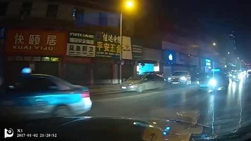太着急了 轿车路口并道摄像车悲催被撞