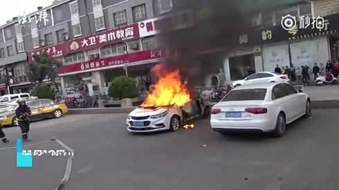 熊孩子乱扔烟雾弹玩具 街头轿车被引燃