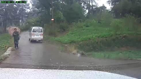掉以轻心的结果,乡村道路上的无奈擦碰