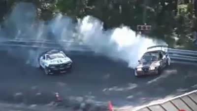 胎烟太浓的困扰!实拍双车漂移碰撞事故