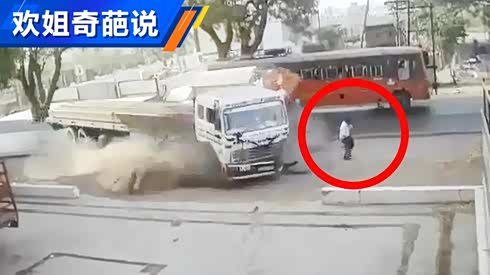 车祸在眼前发生 男子死神擦肩而过