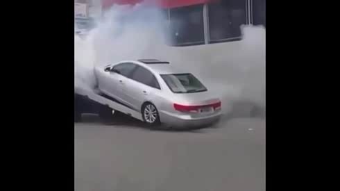 不行还硬来 轿车上板车拼命加速拉烟