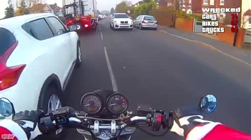 最后一秒逃生 摩托车卡在铁轨遭遇火车
