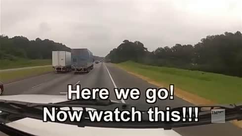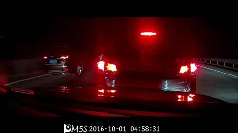 出事就完蛋 两辆大货车高速路相互斗气