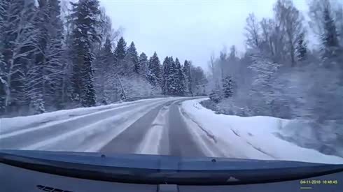 战斗民族就是猛 雪地行车失控开下路肩