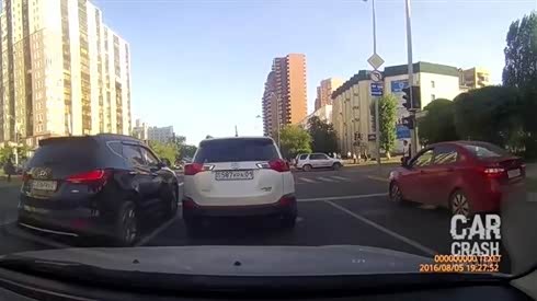 司机毕业了吗 看小轿车强行拐弯被撞