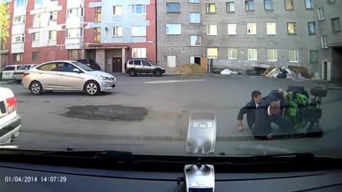 尴尬!两男子驾驶全地形摩托出门就摔倒