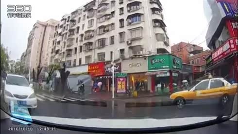 司机头部着地 电动车路口被轿车撞倒