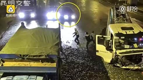 渣土车拐弯速度过快侧翻 司机被甩桥下