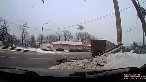 雪地慢点开 轿车拐弯太快失控侧滑撞车