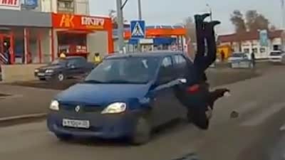 疏忽大意惹的祸 行人过马路被车撞飞