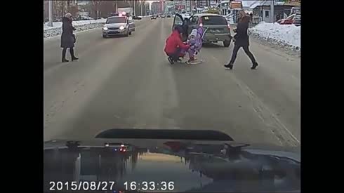 倒地不起 看行人过马路惨被轿车撞飞