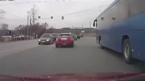 哥俩一块倒霉 两公交车与闯红灯车相撞