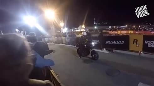 真够吓人的 摩托车弹射起步后瞬间翻车