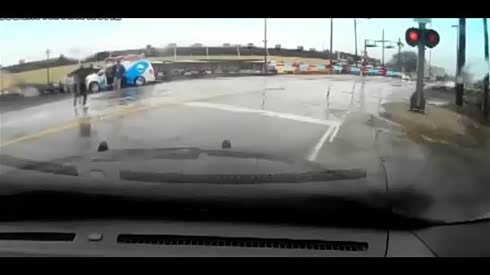 人车同遭殃 爆强火车街头发飙似海啸