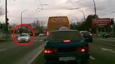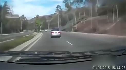 吓一大跳 实拍车友遭失控轿车突然袭击