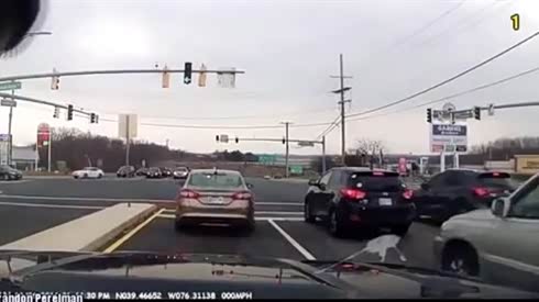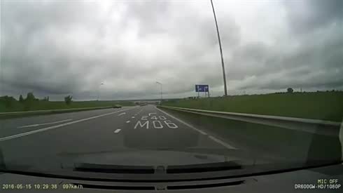 生死瞬间 汽车雨中华丽躲过货柜车撞击
