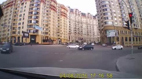撞掉一个车轮 两汽车过路口时发生碰撞