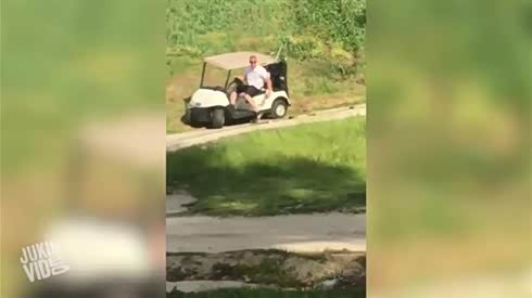 基友笑翻了 屌丝驾高尔夫球车尴尬翻车
