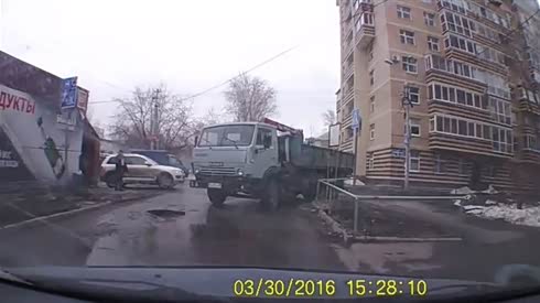 帮忙还是报仇 货车听路人指挥陷进井盖