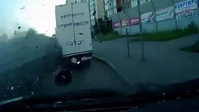 鲁莽超车惹祸 实拍悲剧轿车猛撞货车