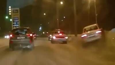 气急败坏了 飙车落败竟然猛撞对手车辆