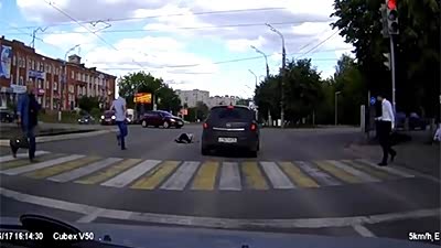 轿车高速抢灯过路口 鲁莽行人被撞飞