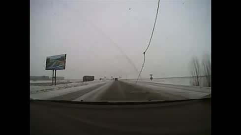 行驶中飞来路灯杆 司机神反应 差点挂了