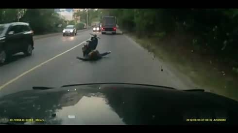 实拍 傻缺男骑着摩托睡着 撞上大货车